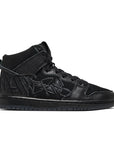 Nike SB Dunk High FAUST Black Gold (DH7755-001) 是纽约涂鸦艺术家 Faust 与 Nike SB. 的合作款,庆祝 Nike SB 成立 20 周年。黑色绒面革底和同色调皮革覆盖层掩盖了微妙的细节。