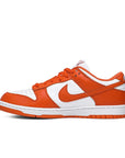 Nike Dunk Low SP Syracuse (CU1726-101) 是 Nike College 颜色计划的一部分,该计划是 12 所以这种方式获得荣誉的学校之一,因此他们的球迷可以从头到脚穿着球队的颜色。白色皮革鞋面和橙色覆层赋予它们简约而经典的感觉。